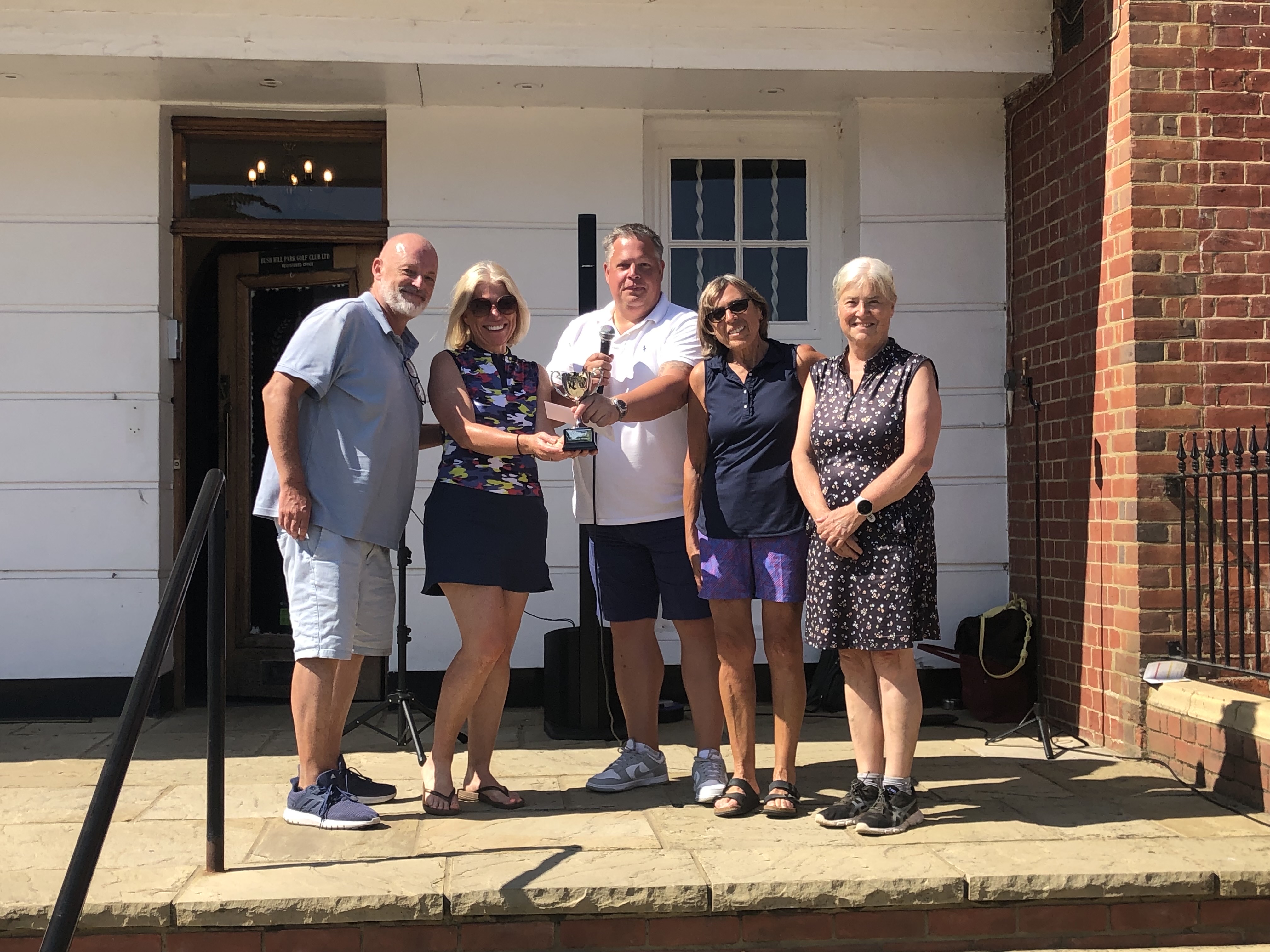 Then on Bank Holiday Monday we were blessed with glorious sunshine for the Martin Dench Texas Scramble, a great turnout on the day, with the winning team of Clare Laycock, Stuart Laycock, Sally Minks, and Liz Tolton taking the trophy with a super nett score of 47, beating me, Andrew Cordon, Iain and Simon Lanario into second place with 51. The outside was packed with people enjoying the Summer Buffett and entertainment from singer Abbey-Jayne, whilst cheering on the final of the Wilson putting vase, which was won by our past Women’s Captain Lucy Bidmead, beating Matt Hunt.